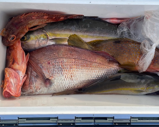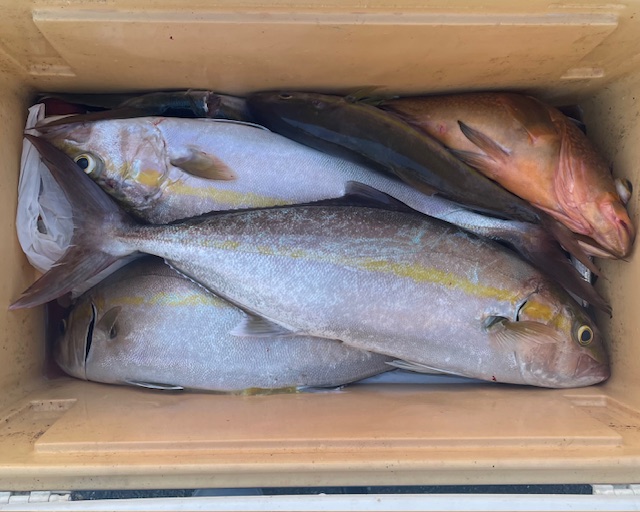 今日の落し込み非常に厳しいく釣果に偏りが出てました 釣られ方でカンパチ3匹 ヒラス1匹 良型のキジハタ2匹