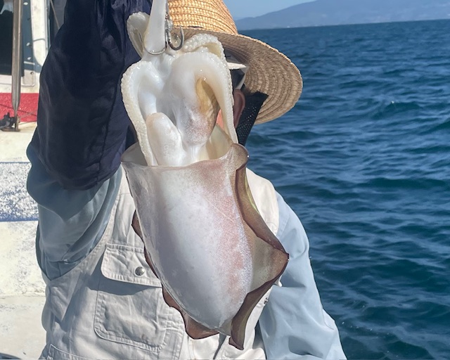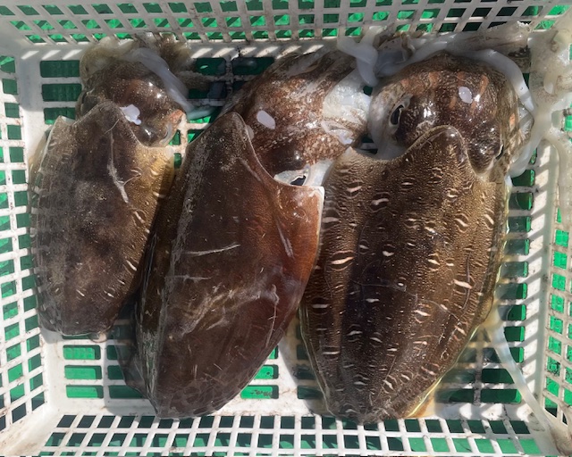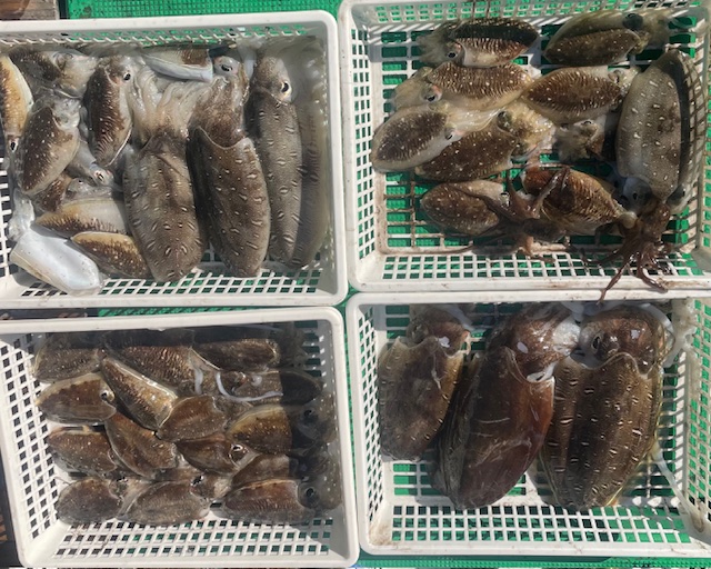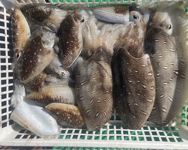 甲イカ釣りでした シーズン序盤だけに型は小さいですが 良型の紋甲イカ混じります 竿頭の方で22ハイでした