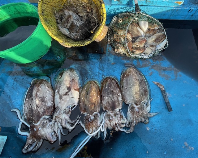 昨日の鯛釣りですが非常に厳しい状態でした 今日はプライベートで甲イカ釣りに行って来ました まだまだ紋甲イカも行けそうです 甲イカも大きくなった様です