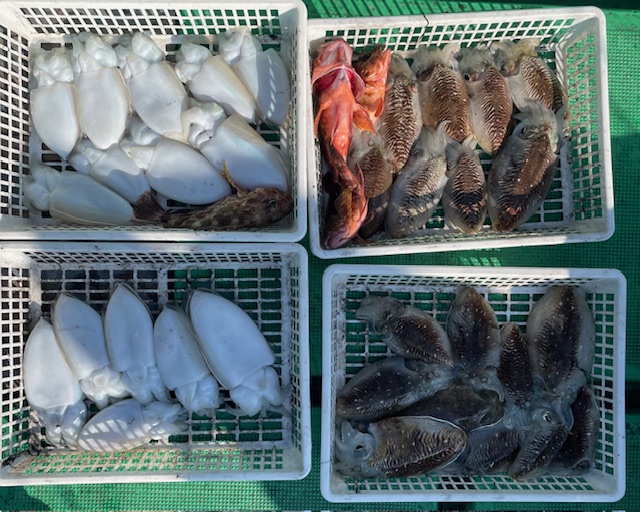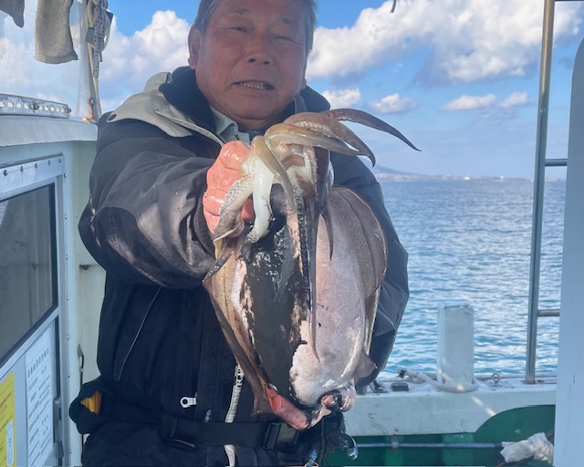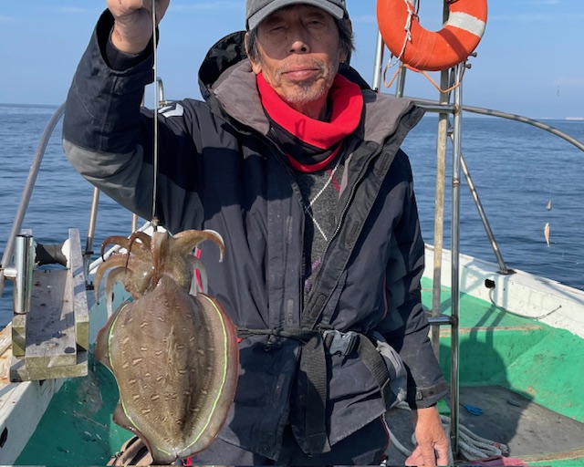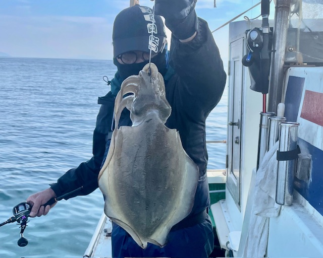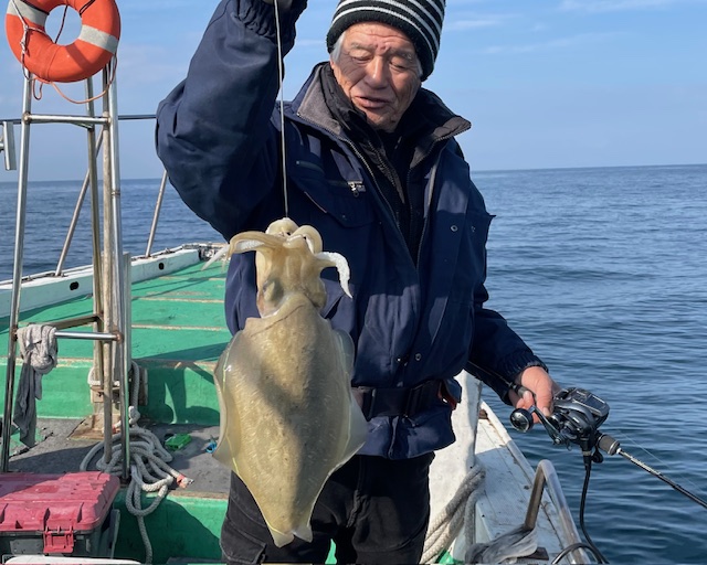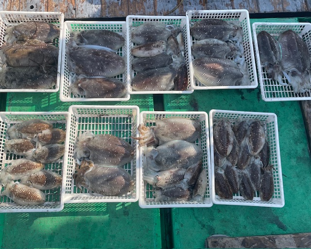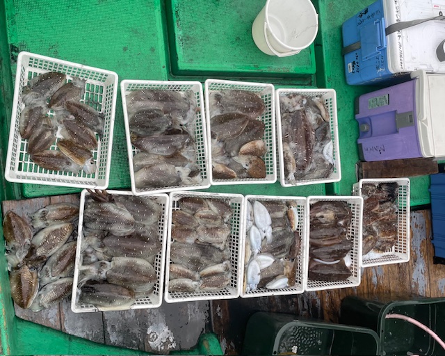 紋甲イカ好調でした 一人で紋甲イカ8ハイの方居られました 大きいもので約2キロ近くあるのでは