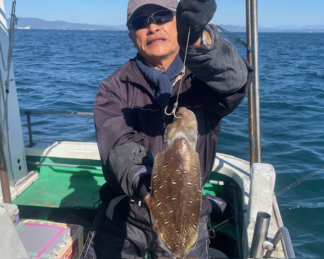 甲イカ釣りでした シーズン序盤だけに型は小さいですが 良型の紋甲イカ混じります 竿頭の方で22ハイでした