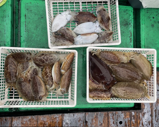 甲イカ釣りでした甲イカ混じりで紋甲イカ多数
