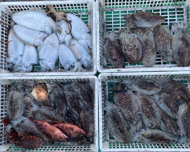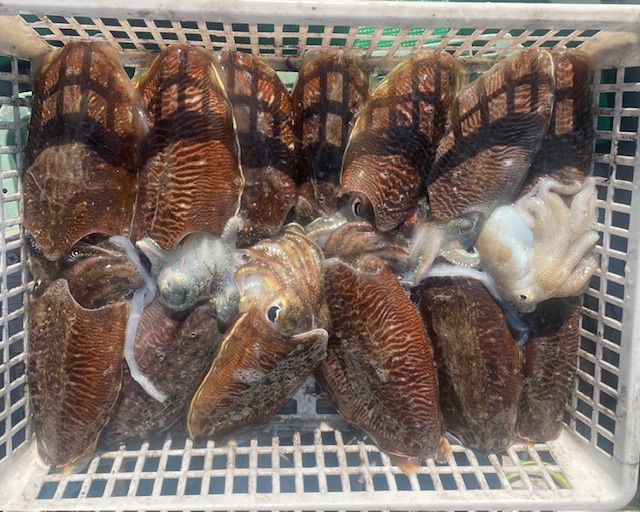 真鯛と甲イカのリレーでした 真鯛は潮止まり寸前で釣れず 甲イカも潮緩く乗り今一でした 竿頭の方で14ハイ止まりでした